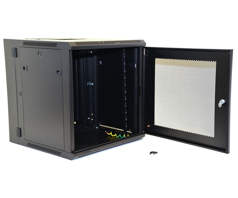 This Wall Mount Enclosure Cabinet isexcellent for use with various types of electronic equipment and ideal for use where floor-space is limited, including classrooms, homes, small offices and telecom rooms. Itis made of a highly durable, welded frame and has a turning angle on the front doorof over 180 degrees. A cooling fan can be installed on the top cover of the cabinet to increase air circulation and increase cooling.