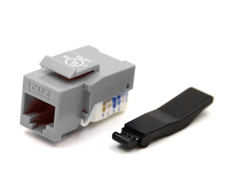 The high speed Cat6 modular RJ45 Keystone Jack is easy to use with a 110-Type Insulation-Displacement Contact (IDC) and 90 degree connection.It can be used effectivelybe used with a keystone wall plate or compatible patch panel, providing a complete solution for voice, home, office and audio/video applications. The wiring diagram is located on the keystone jack, next to wire clips themselves.