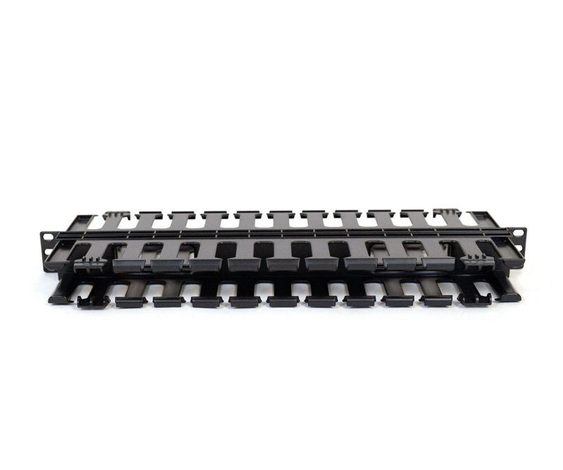 This cable management rack mount panel is a standard 19" 1U plate that can be used as a cable organizer and provides a neat and clean appearance byfor your cabling. The cable management panel fits a standard 19" wide rack and covers 1U of rack space. The panel is constructed of black molded plastic with mounting holes predrilled for ease and convenience.
