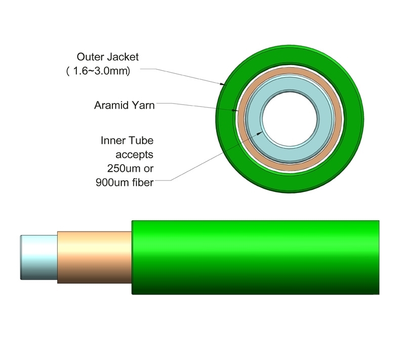 - Jacket Diameters: 2mm and 3mmto accept either 250µm Bare Fiber or 900µm Tight Buffer cable
